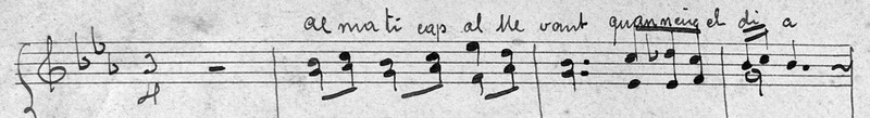 | Incipit literari: | Al matí cap al llevant quan neix el dia |